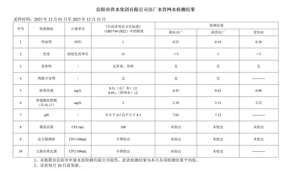 12月-出廠水、管網(wǎng)水檢測
